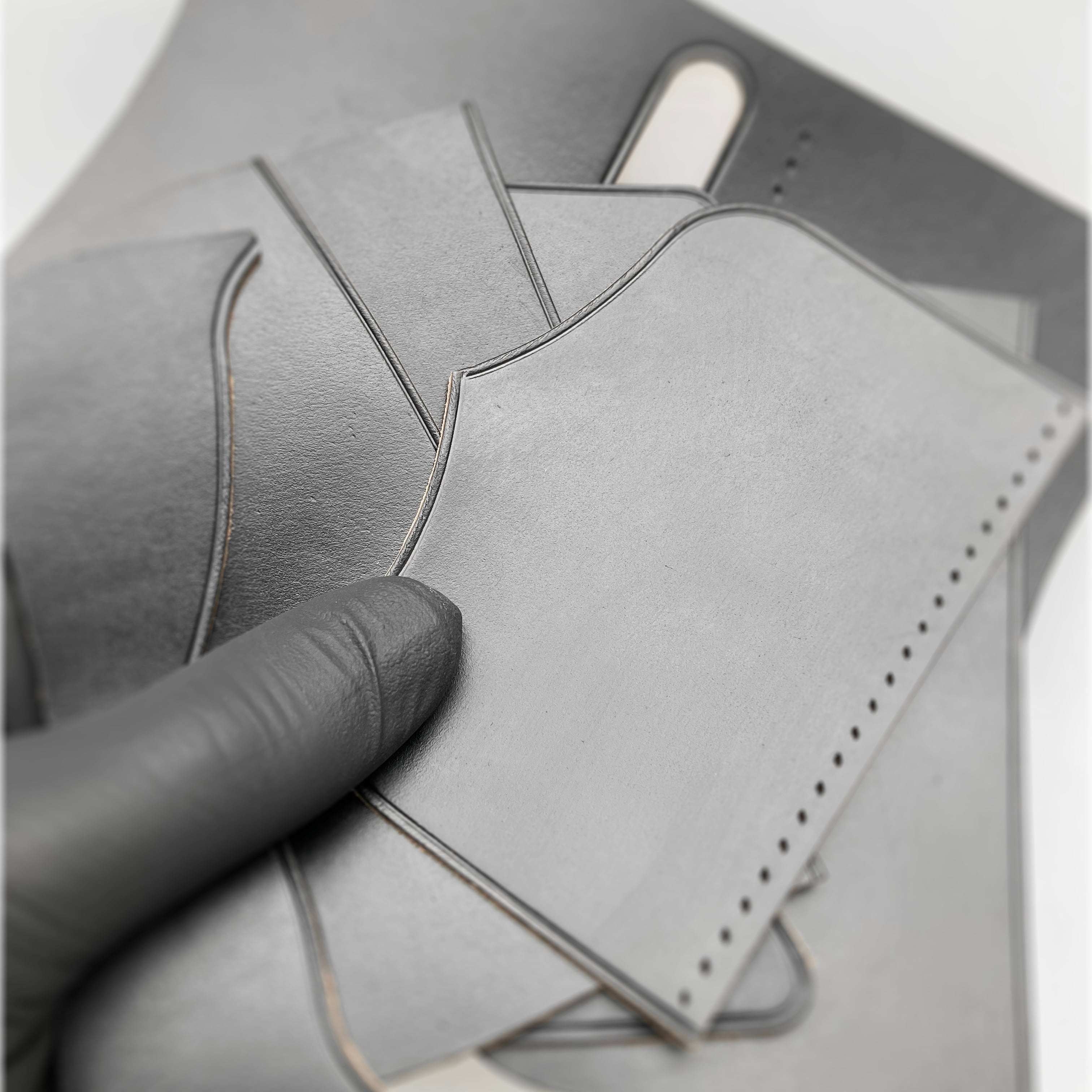 長期間での使用に耐えるため、壊れないことを最優先にして、あえてファスナーを不使用に。フラップには曲線・内部に仕切りを取り入れた。