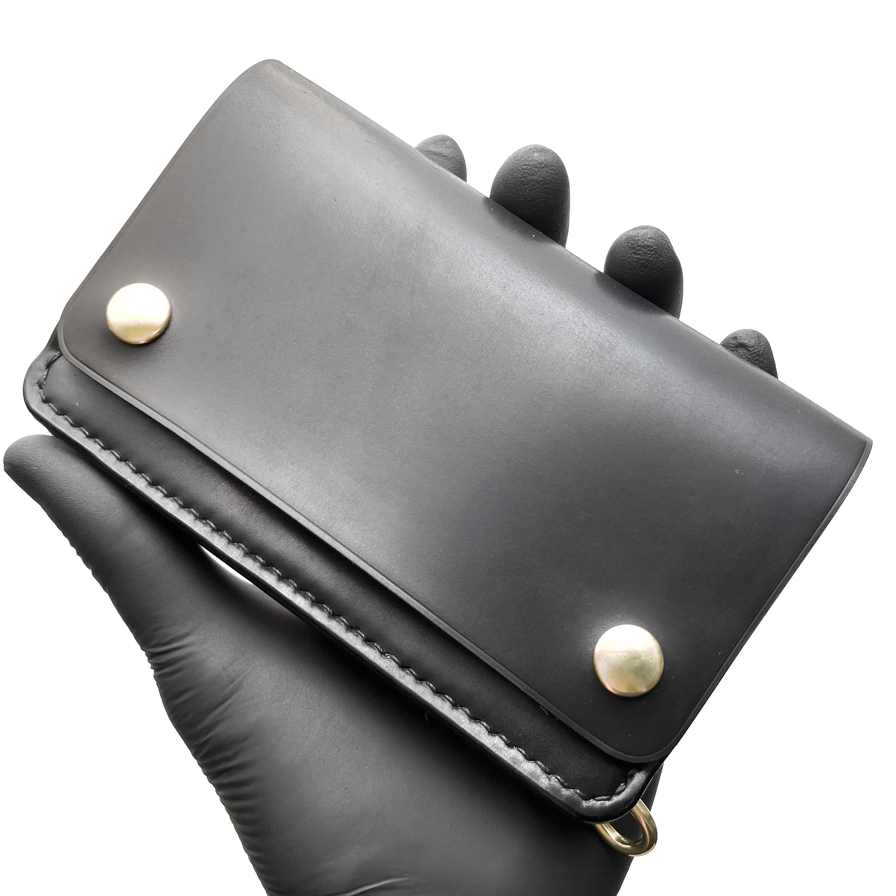 一般的なトラッカーウォレットでは、内装正面に金具を取り付けるが、Kaijiendoでは、ヒップポケットからの流れを考慮して、外装背面に金具を取り付けた。
